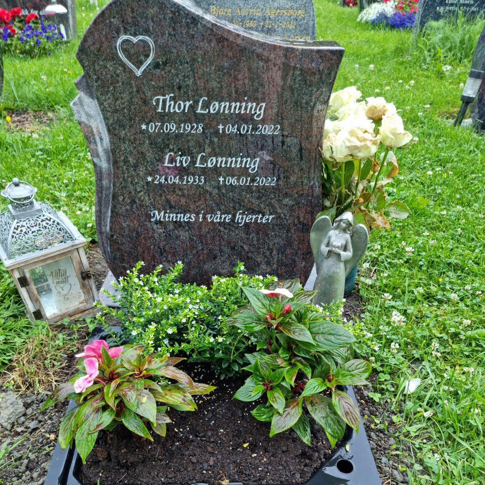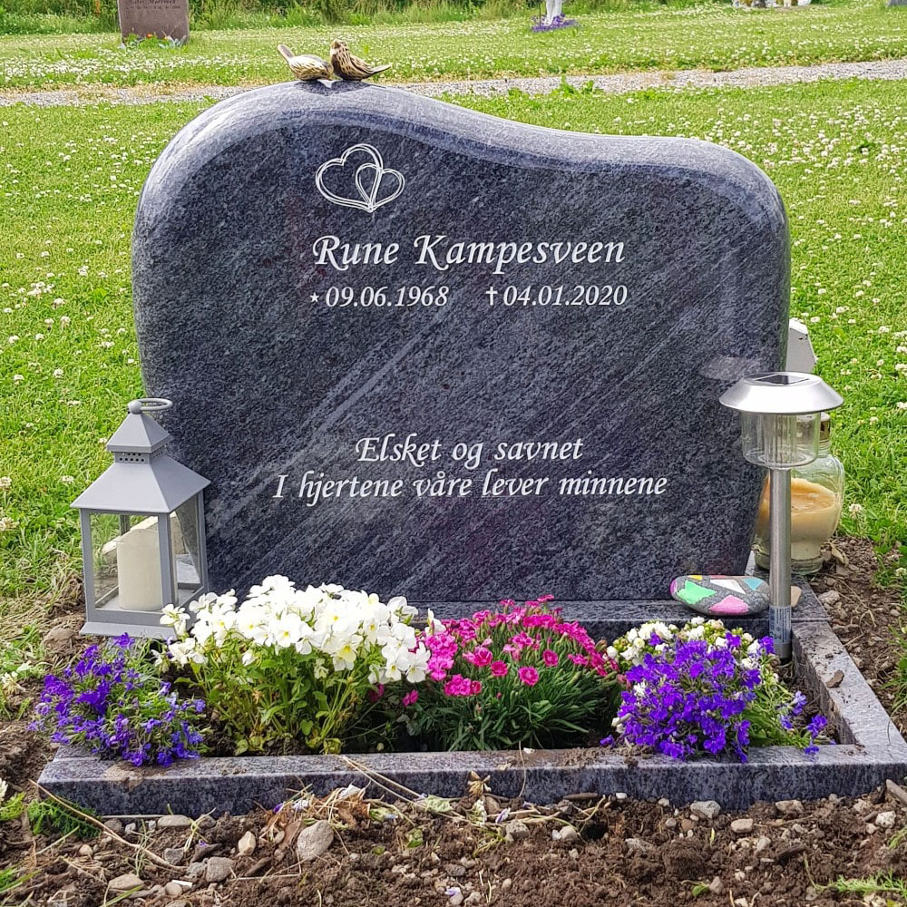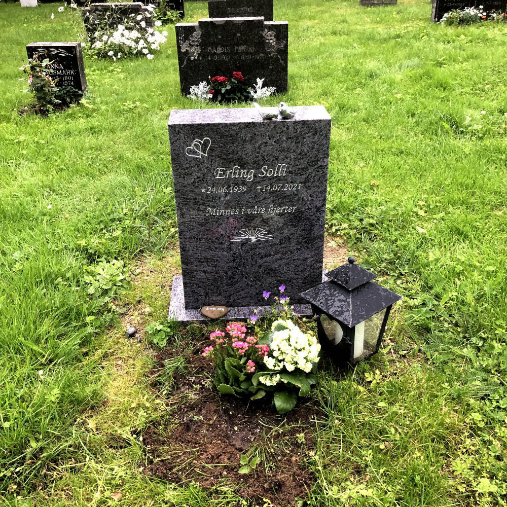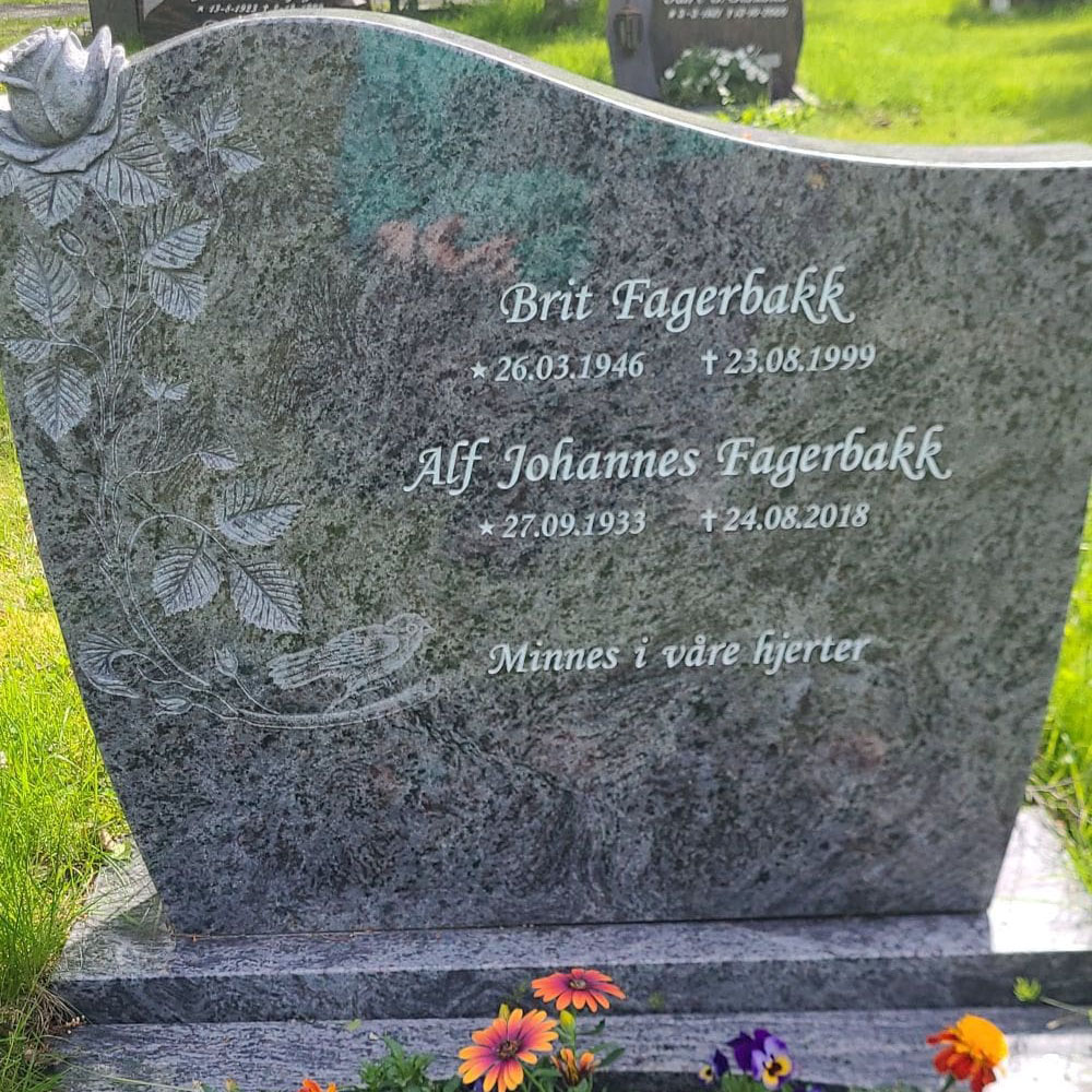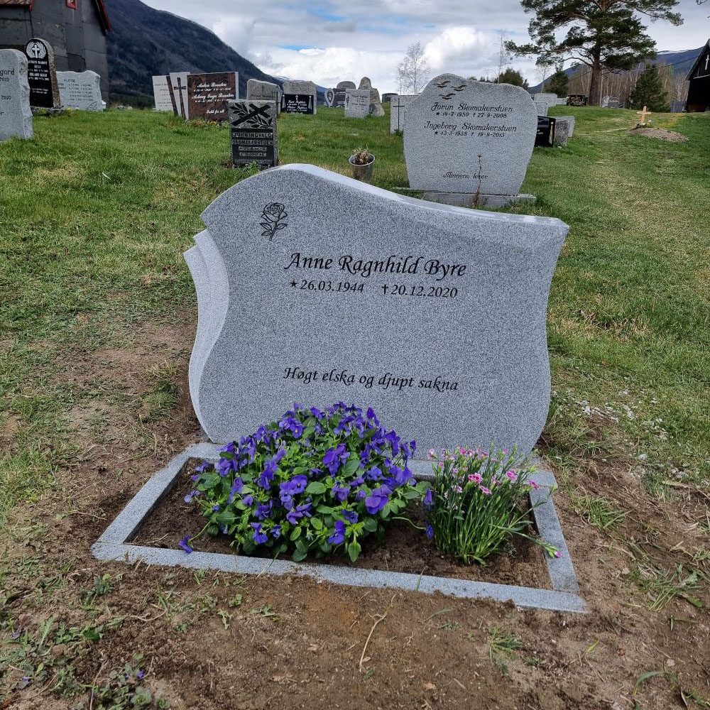 En gravstein kommer best til rette der den hører hjemme - på gravplassen. Derfor har vi samlet sammen noen av bildene vi har mottatt fra våre kunder og fått tillatelse til å vise frem. Vi håper at det kan gjøre det lettere for de som nå trenger en gravstein å velge den steinen som blir riktig for den enkelte familie. I tillegg til å se noen av våre modeller så kommer også variasjonen i farger på steinene i ulikt lys osv. frem når man ser gravsteinene ute på kirkegården.
