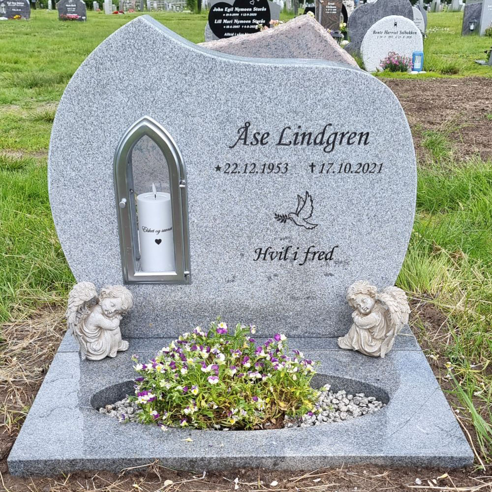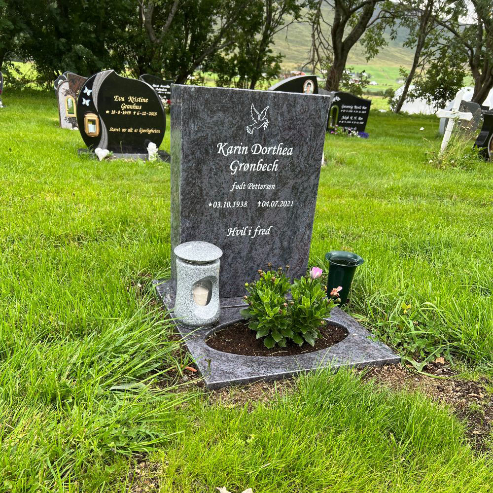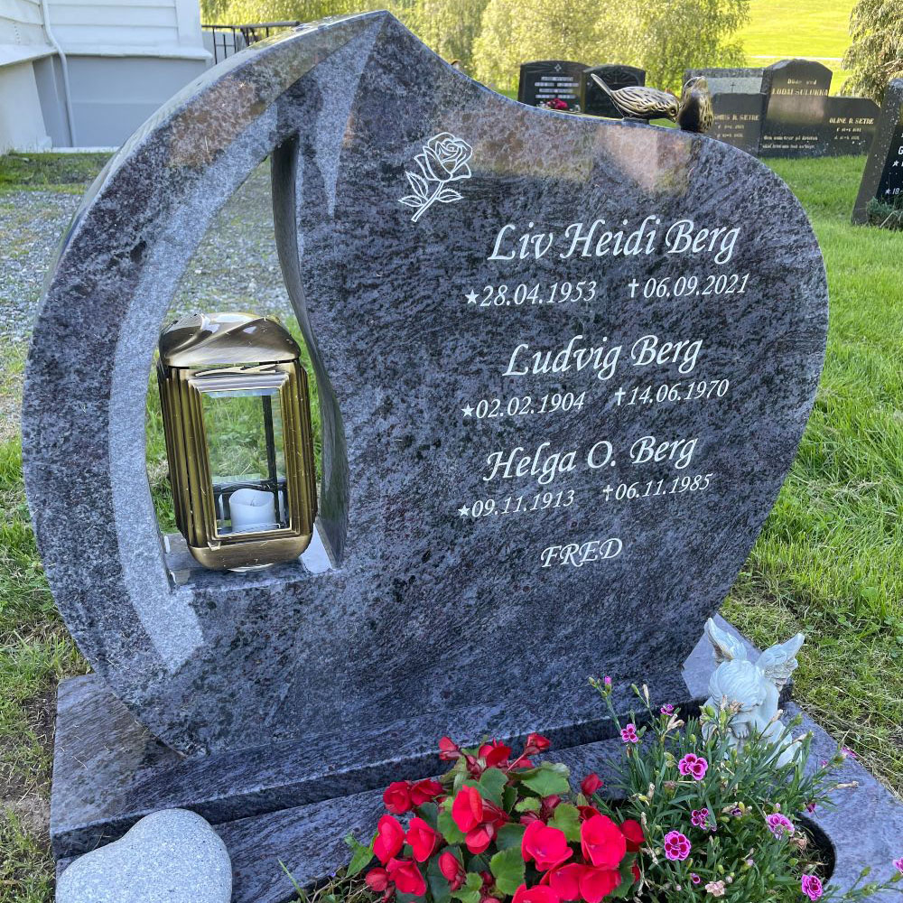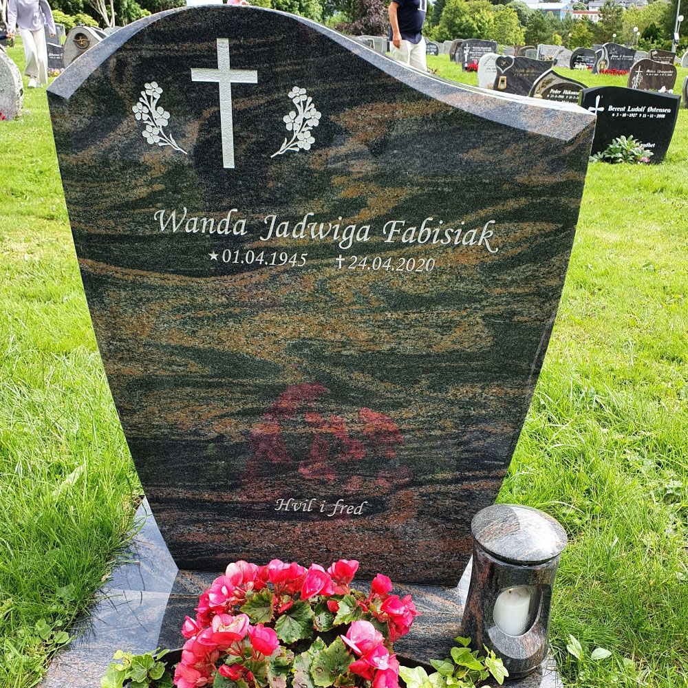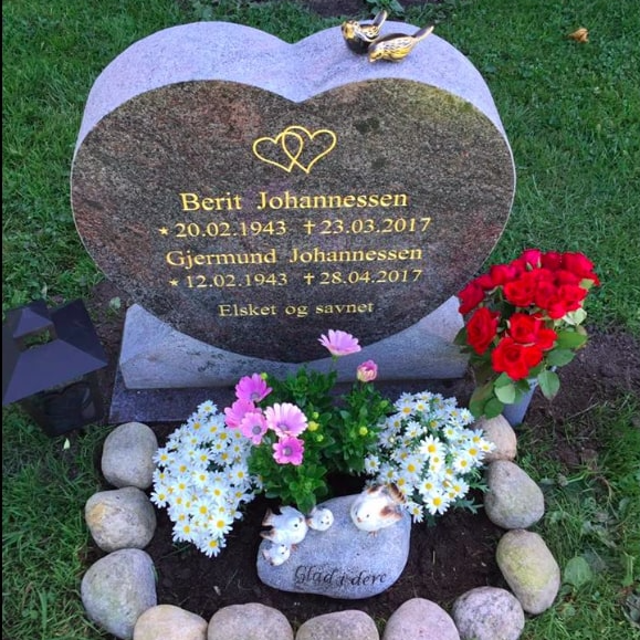 En gravstein kommer best til rette der den hører hjemme - på gravplassen. Derfor har vi samlet sammen noen av bildene vi har mottatt fra våre kunder og fått tillatelse til å vise frem. Vi håper at det kan gjøre det lettere for de som nå trenger en gravstein å velge den steinen som blir riktig for den enkelte familie. I tillegg til å se noen av våre modeller så kommer også variasjonen i farger på steinene i ulikt lys osv. frem når man ser gravsteinene ute på kirkegården.