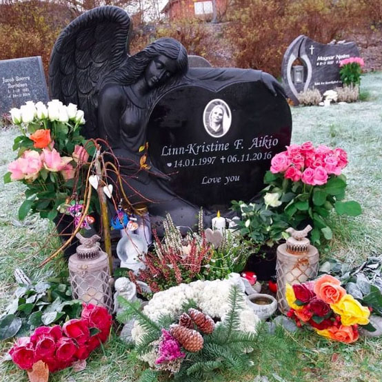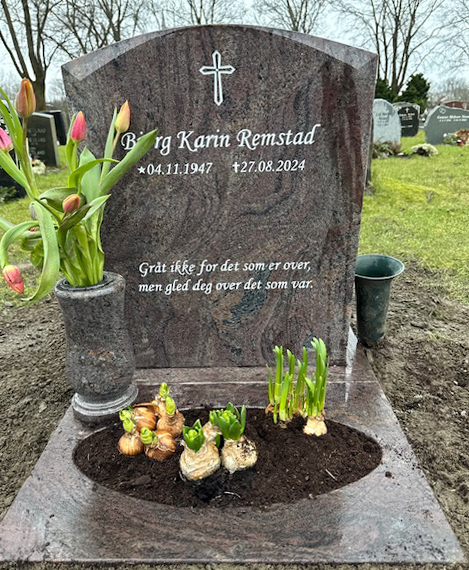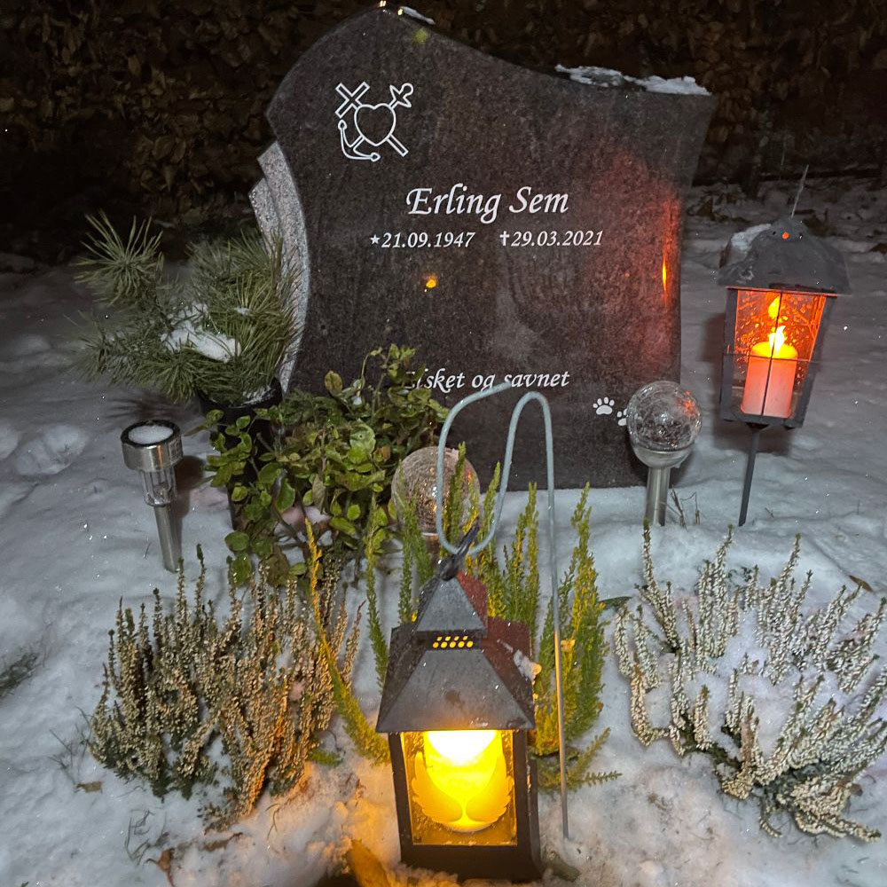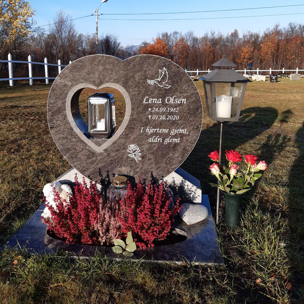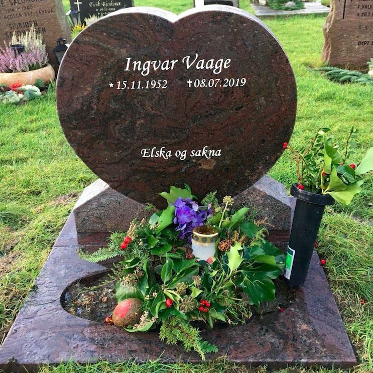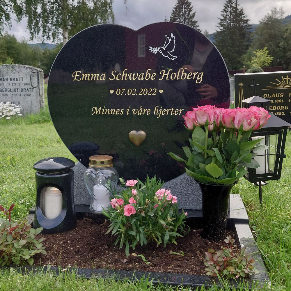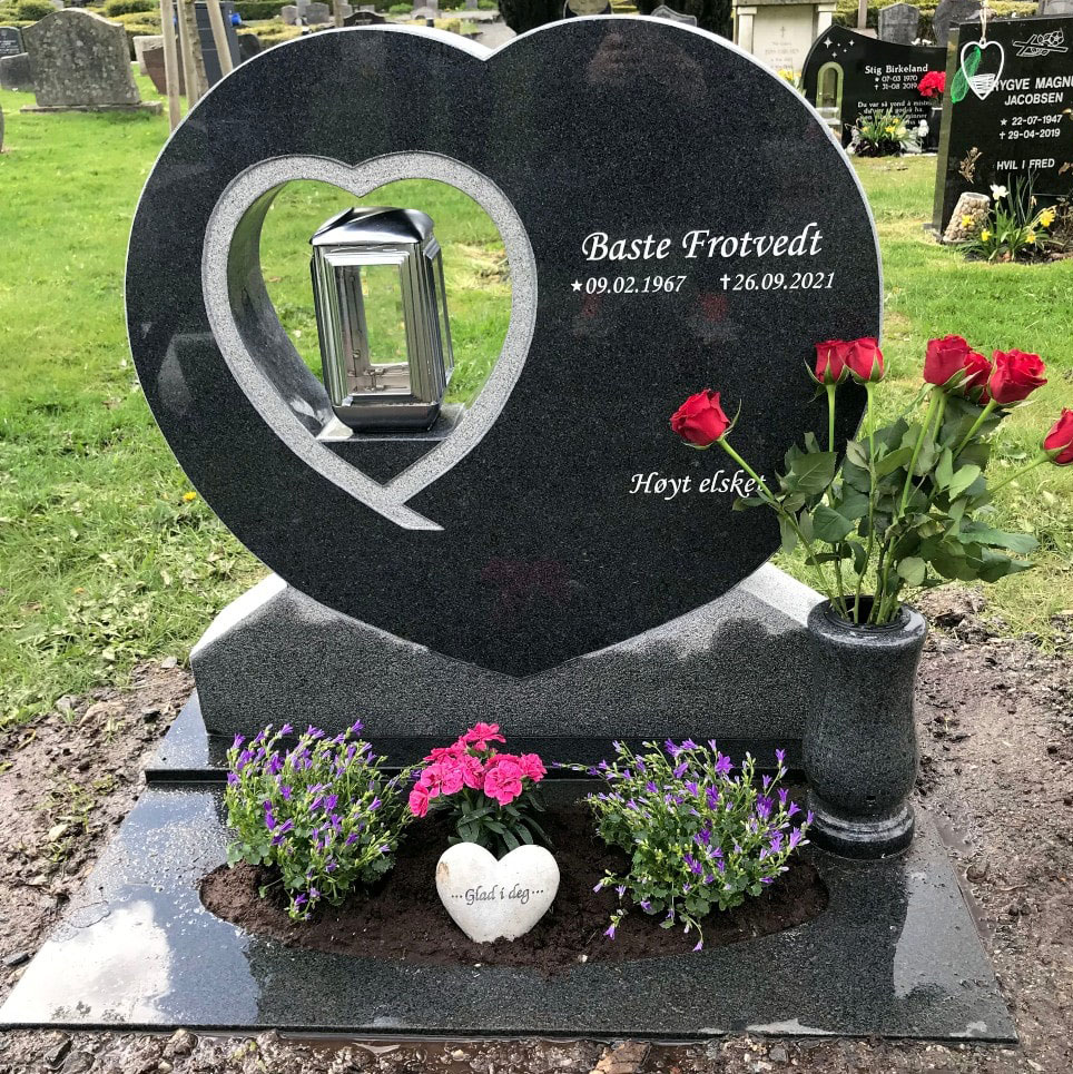 En gravstein kommer best til rette der den hører hjemme - på gravplassen. Derfor har vi samlet sammen noen av bildene vi har mottatt fra våre kunder og fått tillatelse til å vise frem. Vi håper at det kan gjøre det lettere for de som nå trenger en gravstein å velge den steinen som blir riktig for den enkelte familie. I tillegg til å se noen av våre modeller så kommer også variasjonen i farger på steinene i ulikt lys osv. frem når man ser gravsteinene ute på kirkegården.